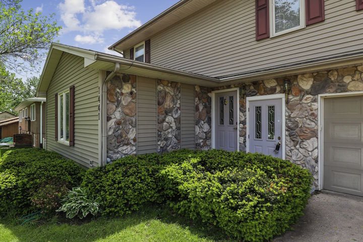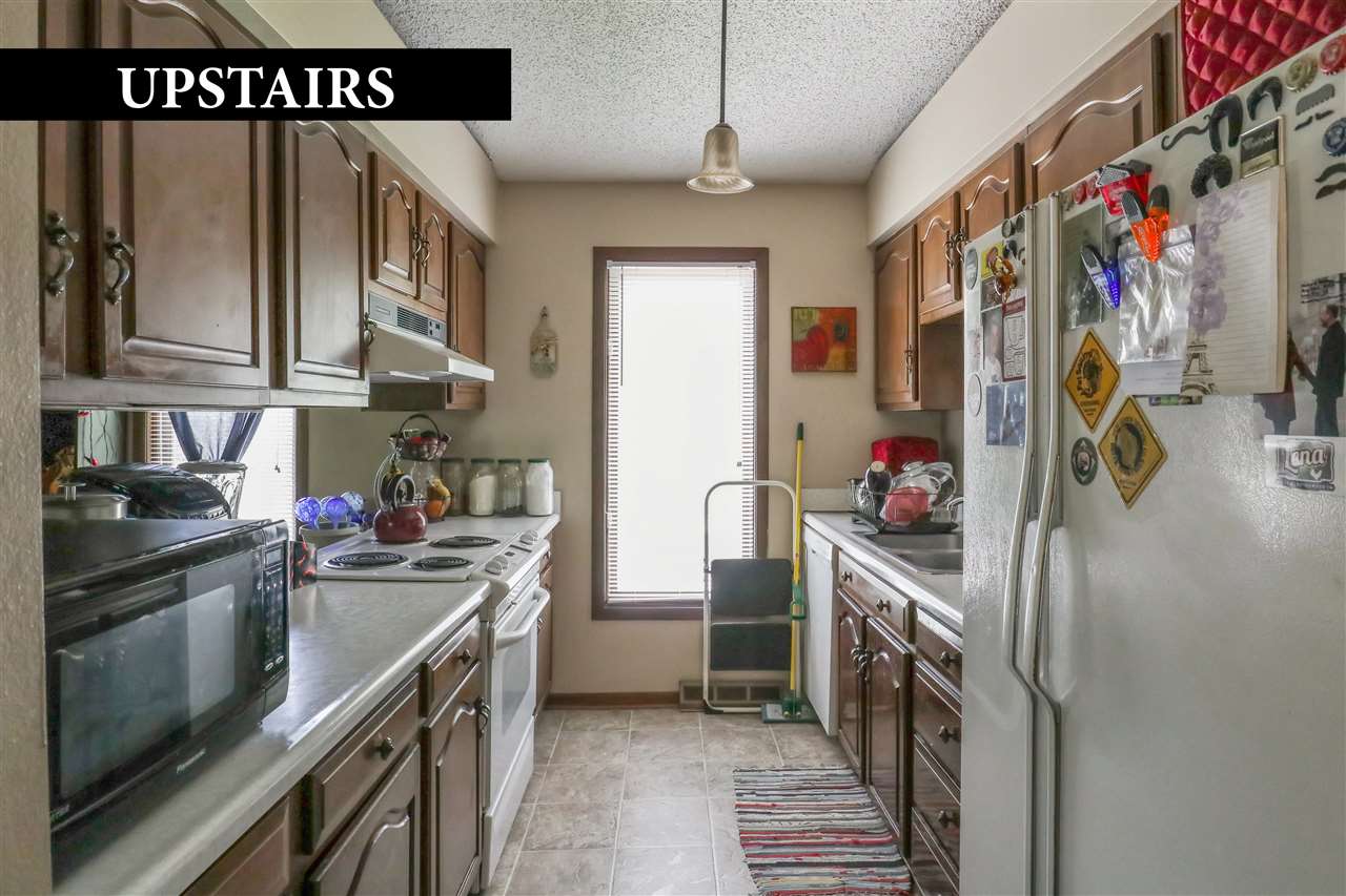 Duplex income property OR single-family home w/ accessory unit. Two units include upper 2 bdrms, 1 bth & lower 4 bdrms, 3 bths. Feat. Great Room w/ vaulted ceilings in each unit, laundry in each unit, separate entry, shared garage & storage. Main unit: fireplace, 3-season porch w/ access to fenced backyard. Upper unit: balcony off Great Room. New stainless LG ref & DW, Samsung range, estimated installation late Oct. Common: garage, storage. Wooded lot. Great in-law suite/income property potential.